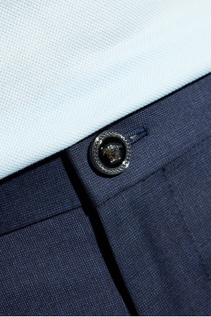 > Versace 深蓝色 羊毛裤带折痕
