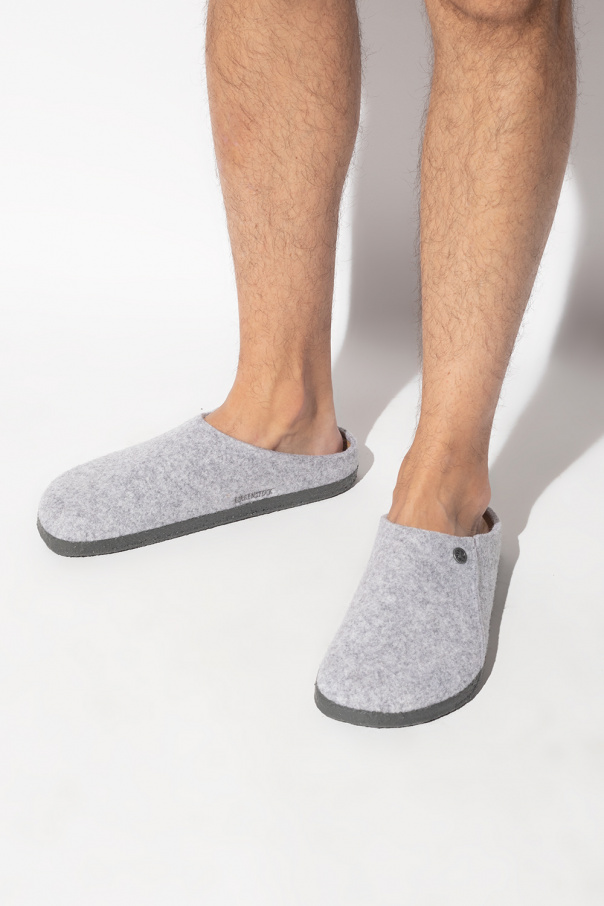 Birkenstock的浅灰色调Zermatt Rivet拖鞋。兔毛毡质。含logo。轻质软木及橡胶质深灰色鞋底。
