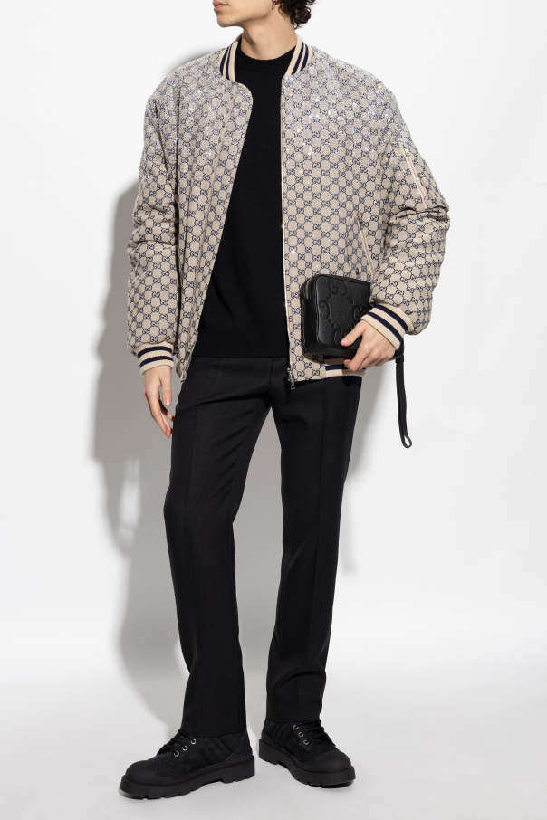 Gucci 米色 带闪亮贴花的加绒飞行夹克