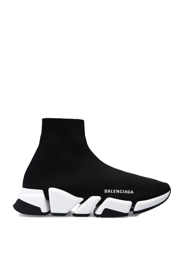 Balenciaga的黑色Speed 2.0 LT运动鞋。袜饰编织鞋帮。饰有白色logo。黑白橡胶鞋底。