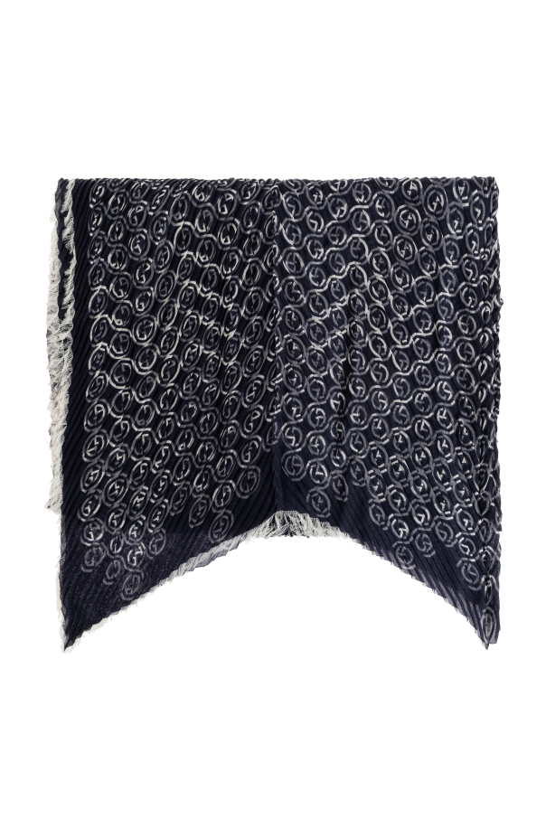 Giorgio Armani 深蓝色 带有字母组合的百褶围巾