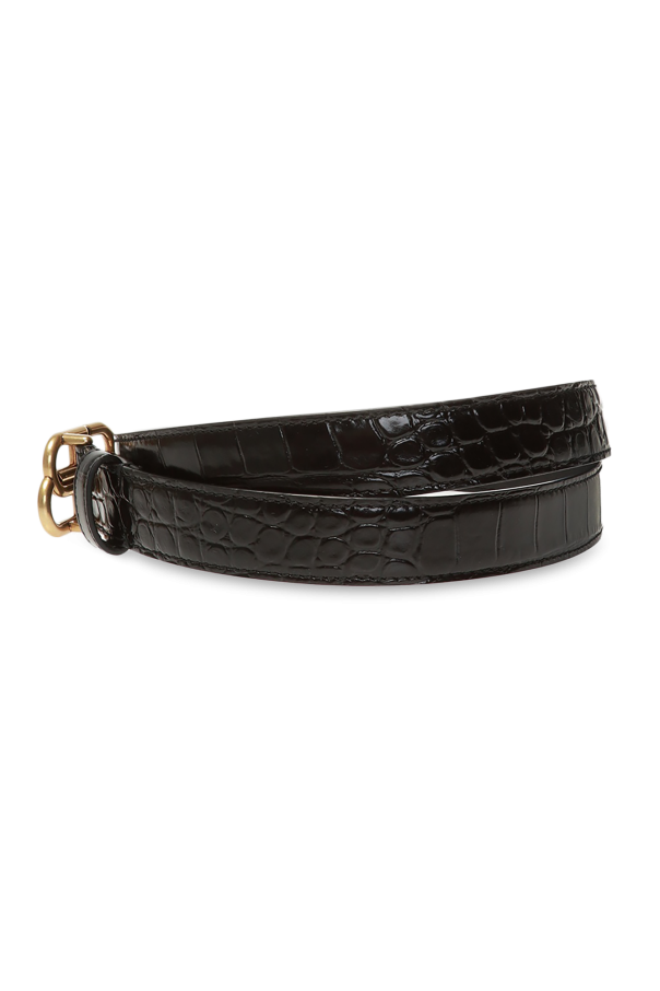 Balenciaga的黑色腰带。牛漆皮制成。附装饰性搭扣,含有金色logo。
