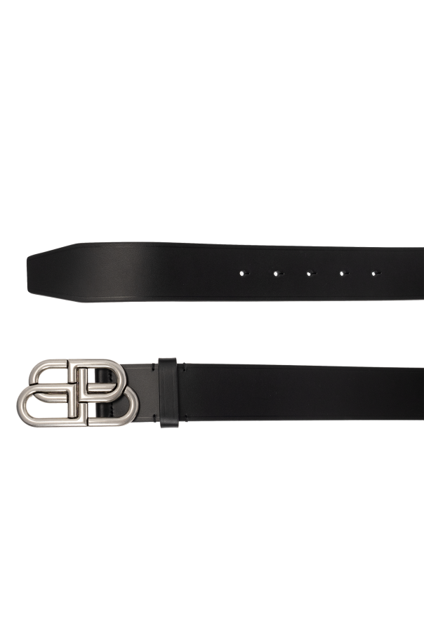 Black belt from Balenciaga. Made from leather, this item features an antiqued silver-tone metal buckle in the shape of a logo.