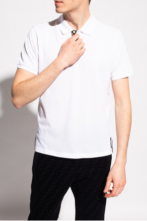 Fendi的白色马球衫。棉质。短袖。附纽扣。