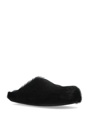 > Marni 黑色 毛绒饰边拖鞋