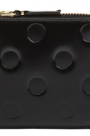 川久保玲( Comme des Garçons)黑色钱包。 牛皮质地,大面积压花圆点花纹图案。金色金属拉链开合。黑色衬里有1个隔层和1个滑袋。