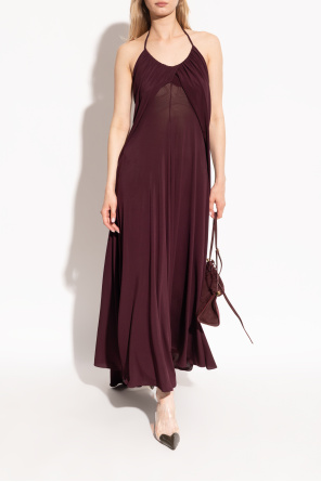 Alaïa 绛红 单肩露肩不对称连衣裙