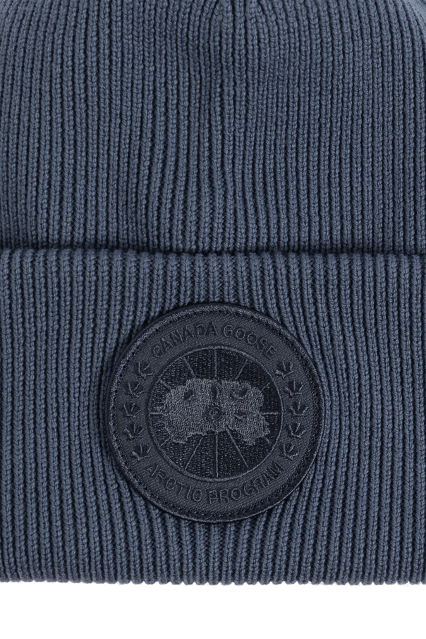 > Canada Goose 蓝色 羊毛帽子,带有徽标贴片