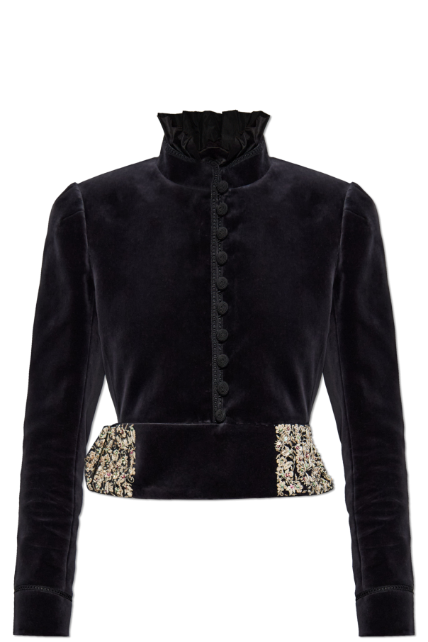 Chloé 奶油色 真丝上衣配蕾丝饰边