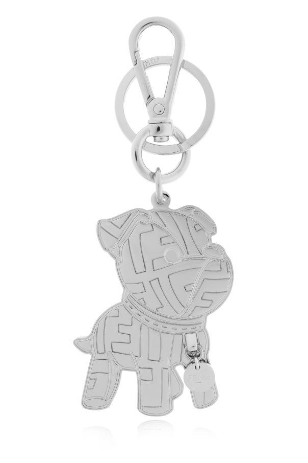 > Fendi 银色 带有狗狗图案挂饰的钥匙扣