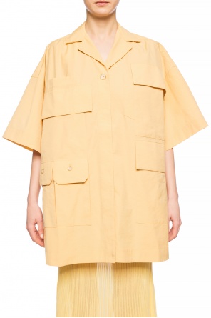 Jacquemus的黄色Vallow大号衬衫。附隐藏式纽扣。短袖。正面附五个口袋。