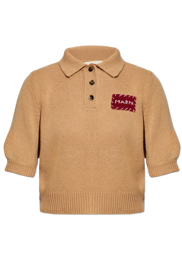 > Marni 深蓝色 羊绒polo衫,带logo贴标