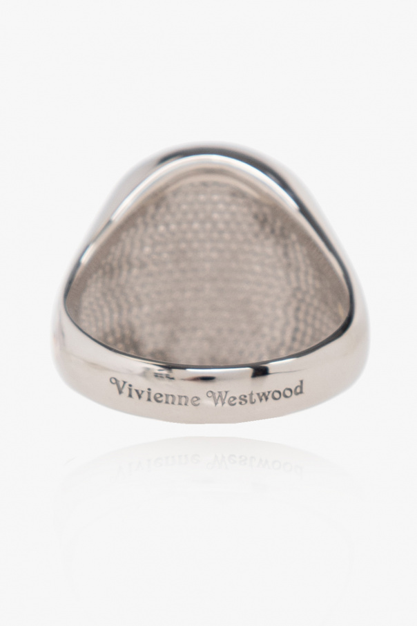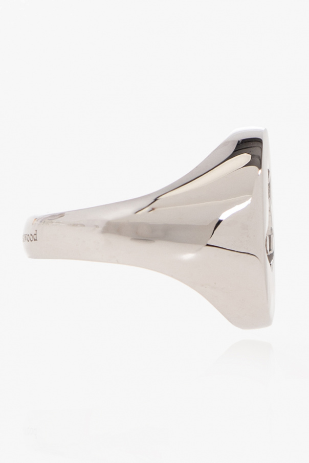 Silver-tone ‘Seal’ ring with an engraved logo from Vivienne Westwood. Made of brass.