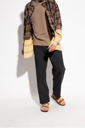 Birkenstock的棕色调Arizona BS拖鞋。绒面革质。棕色调天然软木及EVA泡沫质鞋底。饰带含铜色调搭扣,且含logo。