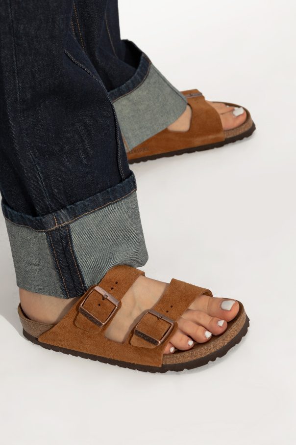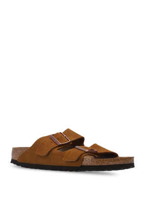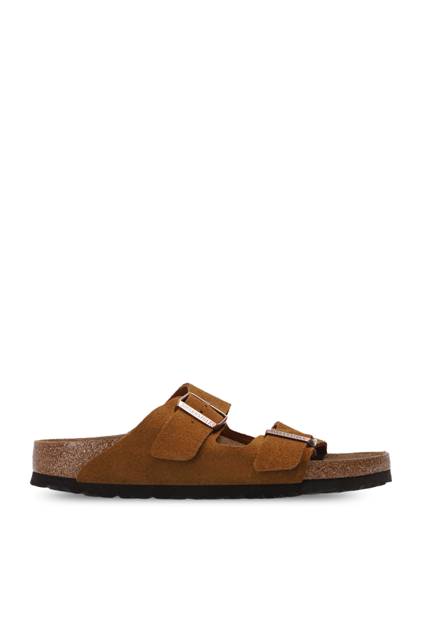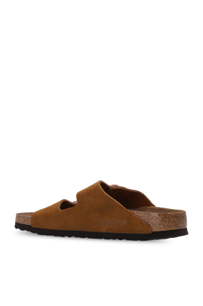 Birkenstock的棕色Arizona BS拖鞋。绒面革质。含黄铜质logo款式搭扣。棕色软木质,含EVA装饰鞋底。