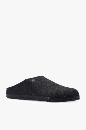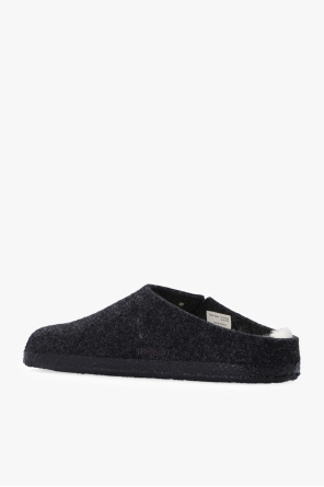 Birkenstock的灰色及白色调Zermatt Rivet拖鞋。兔毛毡质。附logo。皮草衬里。黑色调轻质软木及橡胶材质鞋底。