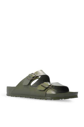 Birkenstock的深绿色调Arizona EVA拖鞋。EVA泡沫质。饰带含深绿色logo装饰搭扣。深绿色鞋底。