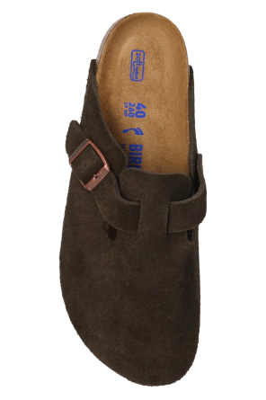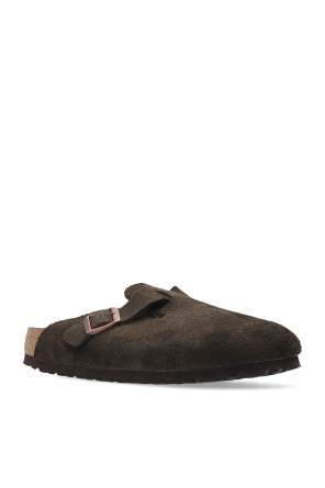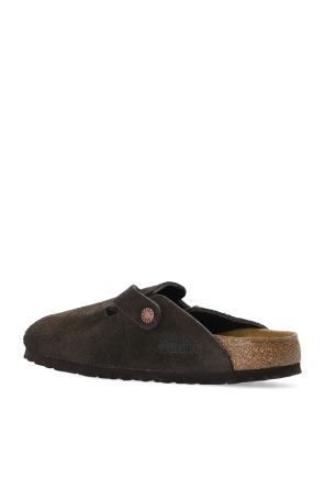Birkenstock的棕色及米色调Boston BS拖鞋。绒面革质。含logo款式搭扣带。软木及EVA泡沫质鞋底。