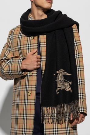 Burberry的棕色和黑色围巾。由羊绒材质制成。饰有图案。饰有流苏。