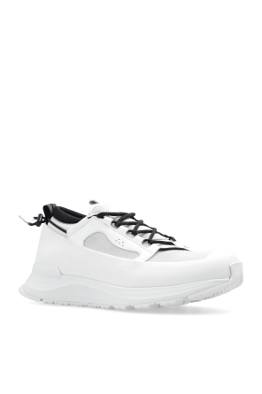 White and black ‘Glacier Trail’ sneakers from Canada Goose. Made with innovative, fully waterproof and breathable HDry® technology, this model sits on a white rubber sole and showcases a quick-lace system, logo detailing and rubber trims. Lined with onSteam® fabric, a 100% breathable microfibre with excellent temperature-regulating properties and equipped with swappable shoelaces.