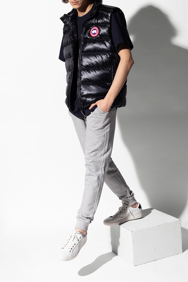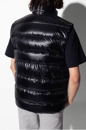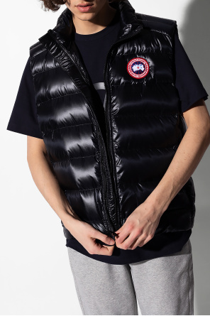 Canada Goose的黑色绗缝背心,采用回收材质制成,以鸭绒填充,拉链开合,饰以logo贴花。两个拉链口袋。