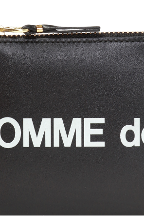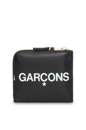 Comme des Garçons的黑色真皮拉链钱包,饰以白色印花标识,配有三个内置分层。