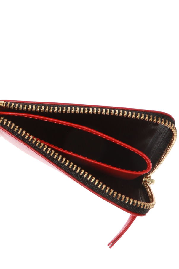 Comme des Garçons的红色真皮拉链钱包,饰以白色印花标识,配有三个内置分层。