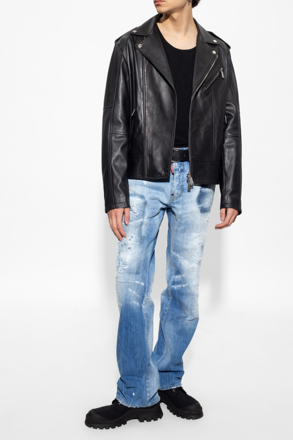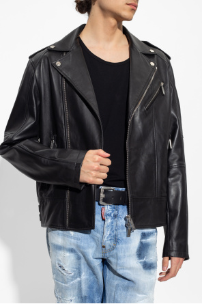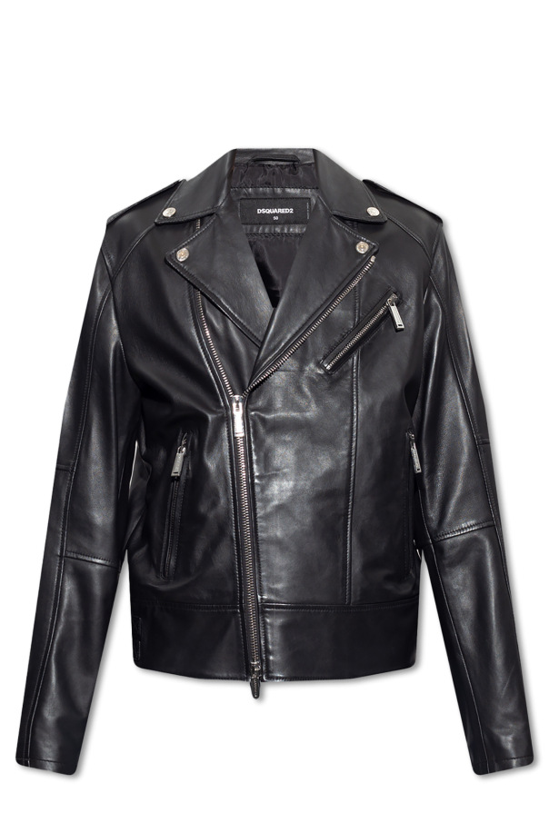 Black jacket from Dsquared2. Crafted from leather, this model features a zip fastening, notch lapels, three zip pockets and long sleeves.