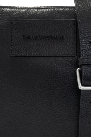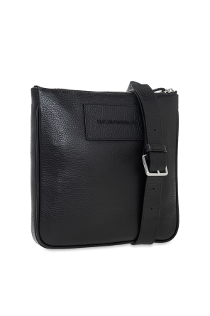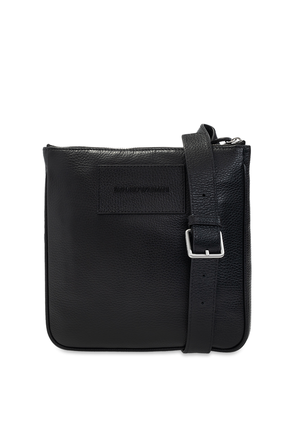 Black shoulder bag from Emporio Armani. Flaunting a patch with a tactile logo on the front, this design features a zip fastening, an adjustable shoulder strap, silver-tone metal hardware and one internal compartment with one slip pocket and one zipped pocket.