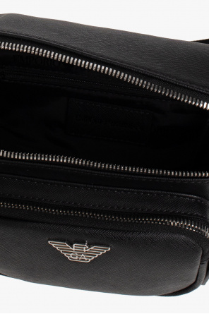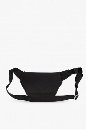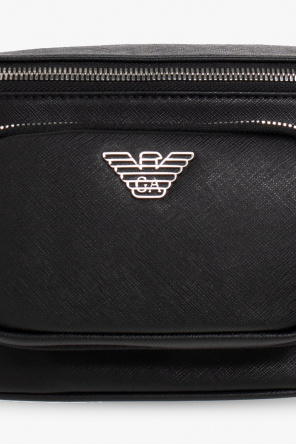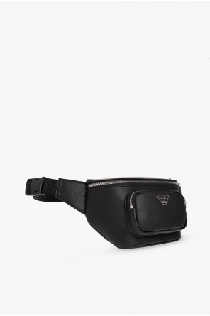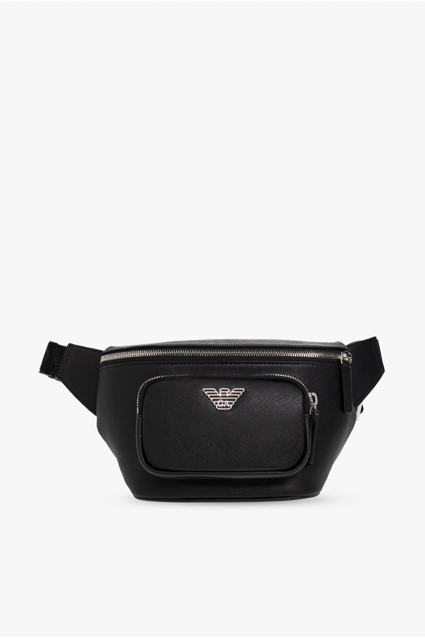 Black belt bag from Emporio Armani. Crafted from faux leather, this design secures with a zip and showcases a logo application, a zip front pocket, an adjustable strap, silver-tone metal hardware and one internal compartment with a zip pocket.