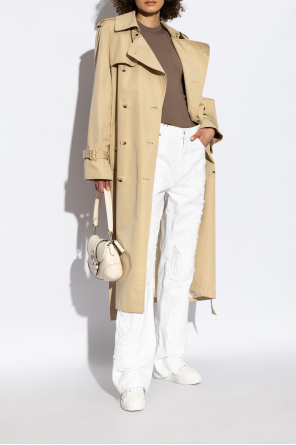 Golden Goose的白色真皮Pure系带运动鞋,饰以白色凸起logo贴花。后面搭配金葱效果的银色元素。白色橡胶鞋底。
