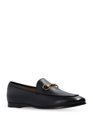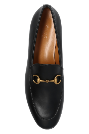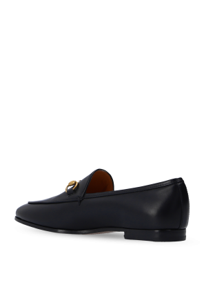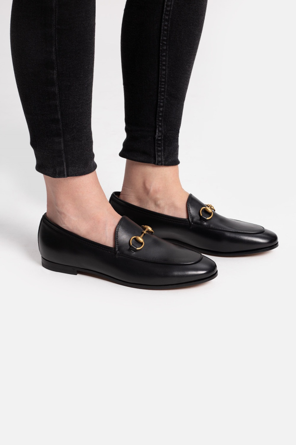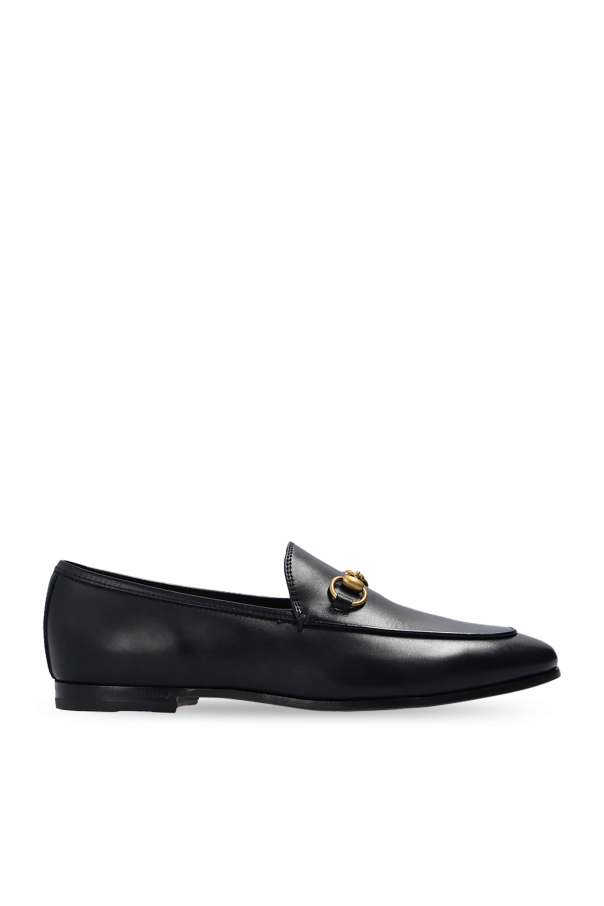 Gucci的黑色皮革乐福鞋。正面附标志性的金色调horsebit样式。