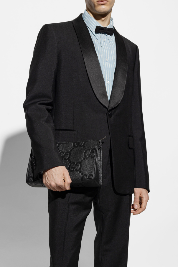 Gucci的黑色乐福鞋,采用绒面革制成,配有品牌标志性的复古金色马衔扣以及棕色和黑色皮革鞋底。
