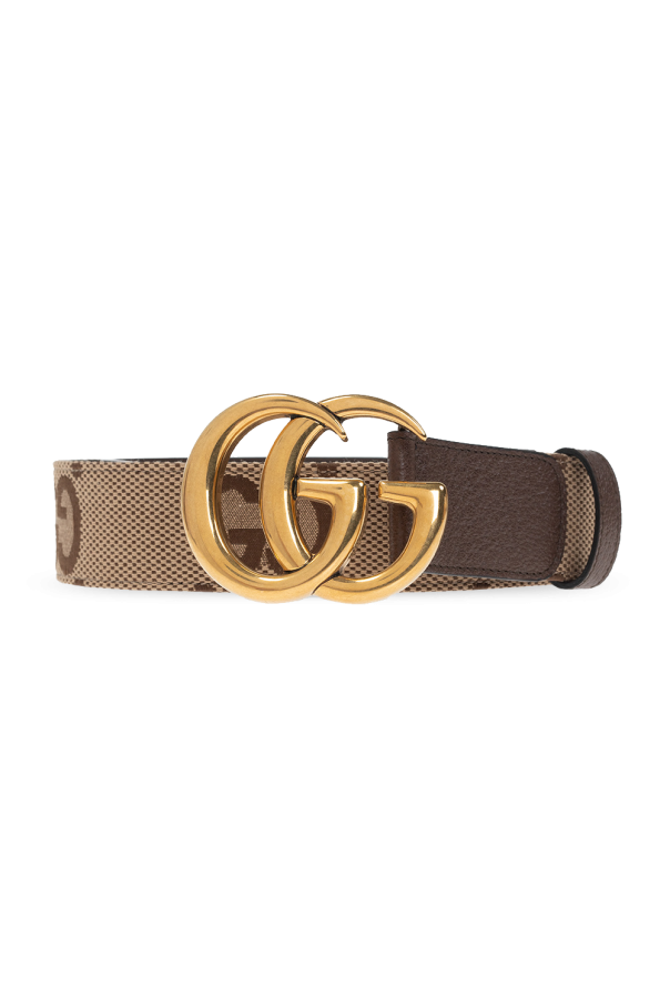 Gucci的米色和棕色腰带,采用GG Supreme高级帆布制成,皮革饰边,饰有金色logo搭扣。