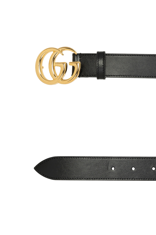 Gucci的黑色腰带。牛皮革制成。含金色调logo型搭扣。