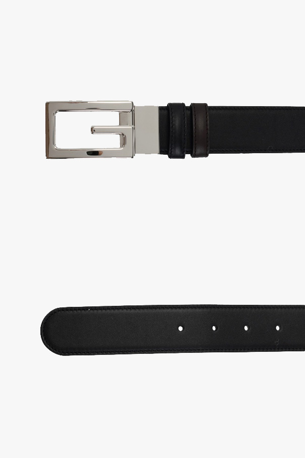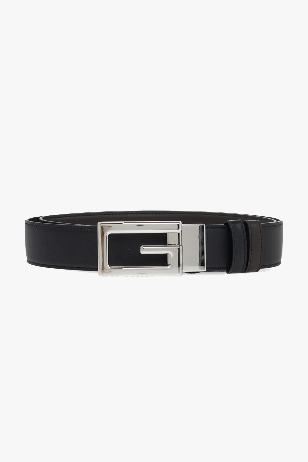 Gucci的黑色及棕色腰带。皮革质。附银色调正方形G样式搭扣。