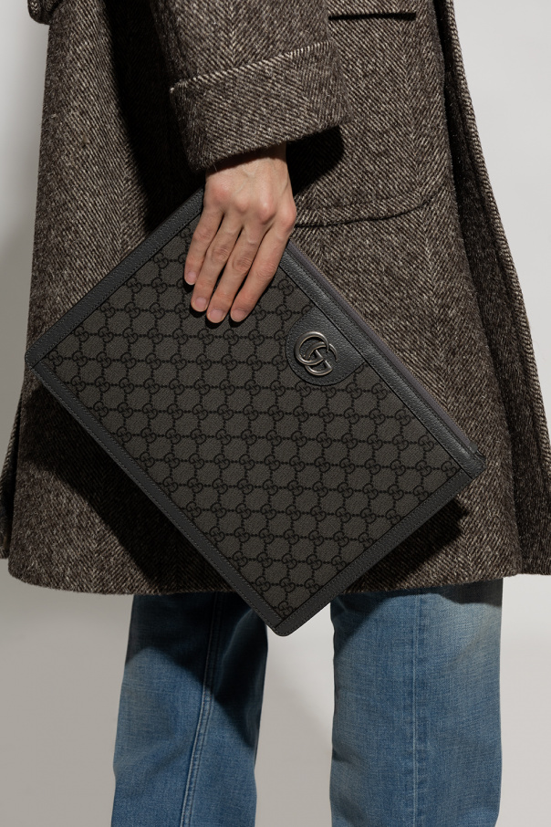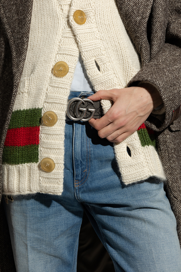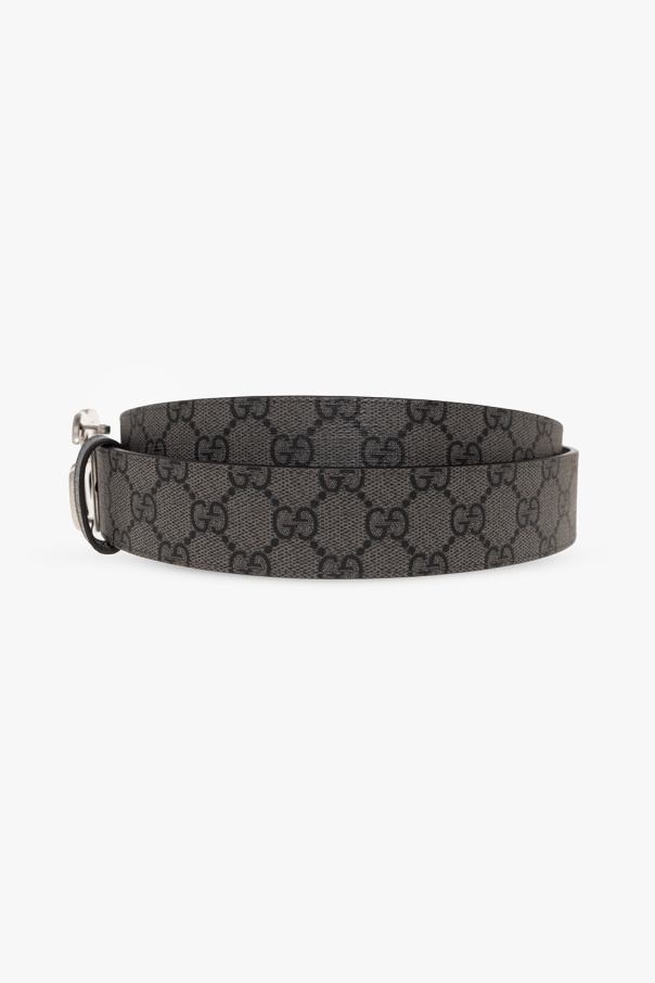 Gucci的深灰色双面腰带,采用“GG Supreme”帆布和皮革制成,配有复古银色金属“Double G”旋转搭扣。