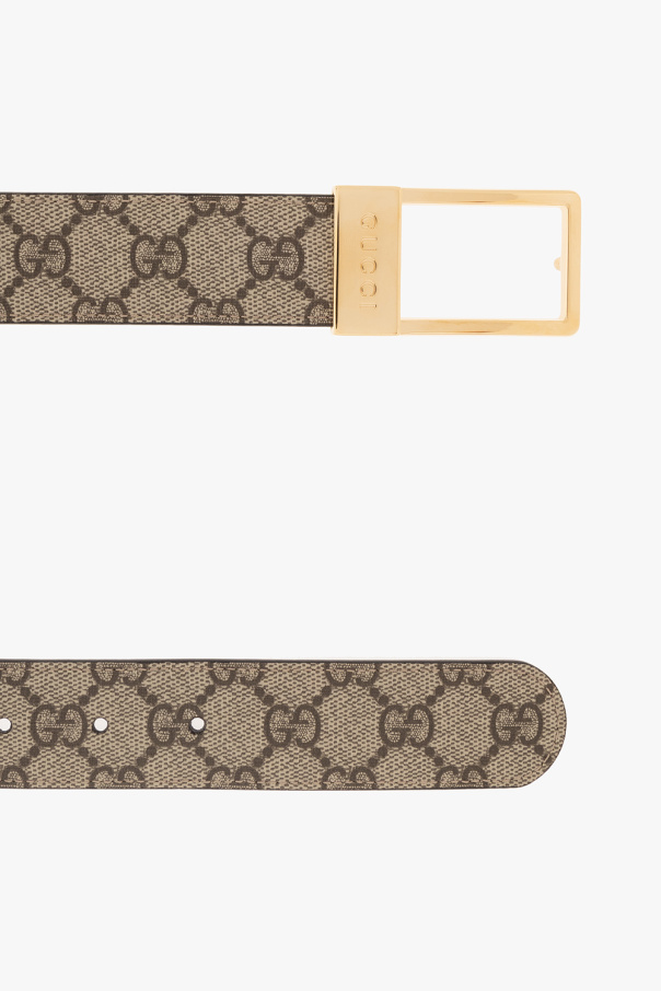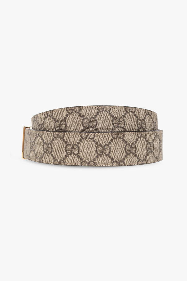 Gucci的米色腰带。由 GG Supreme 帆布和小牛皮制成,配有金色徽标搭扣。