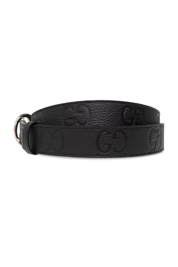 Gucci黑带。该单品采用粒面小牛皮制成,饰有字母图案和徽标形状的装饰性复古银色搭扣。