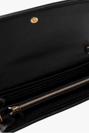 Black ‘Blondie’ wallet from Gucci. Crafted from calf leather, this design features a snap fastening, logo hardware on the front, a detachable chain shoulder strap, gold-tone metal elements and two compartments, one zip pocket, three slip pockets and twelve card slots inside.