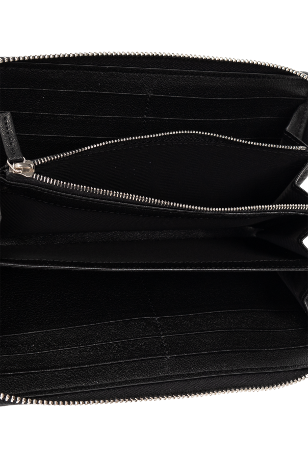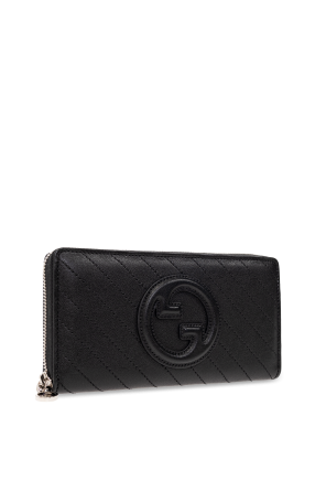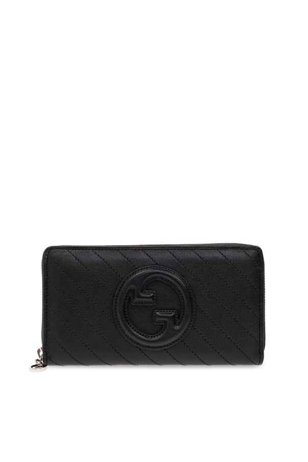 Black wallet from Gucci. Made from lamb leather, this item fastens via a zip and showcases the Interlocking G patch and exposed topstitching. It is complete with silver-tone metal hardware and three compartments, one zip coin pocket and twelve card slots inside.