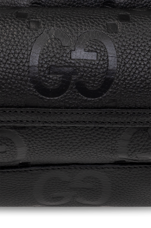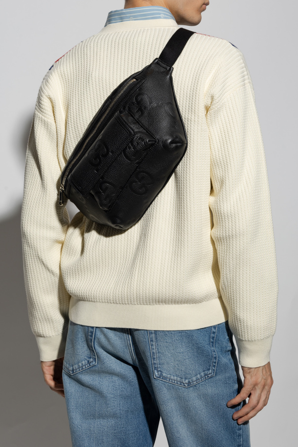 Black belt bag from Gucci. Crafted from leather with an embossed Jumbo GG pattern, this model is complete with a zip fastening, front pocket with a magnetic snap, adjustable strap, one internal compartment and silver-tone metal hardware.
