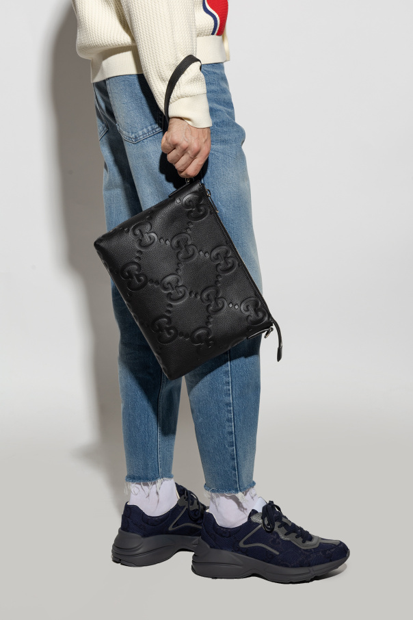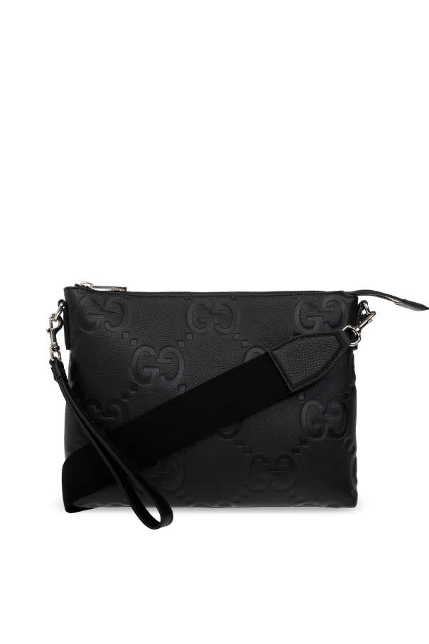 Black shoulder bag from Gucci. Crafted from leather with an embossed Jumbo GG pattern, this model is complete with a zip fastening, detachable and adjustable shoulder strap, silver-tone metal hardware and one internal compartment with one zip pocket.