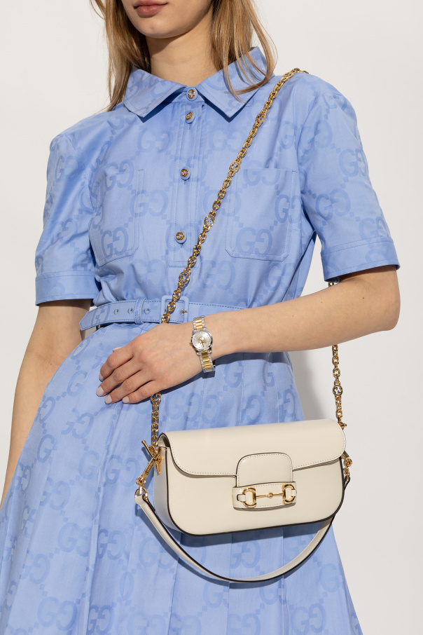 Gucci 奶油色 ‘1955 Horsebit Small’ shoulder bag