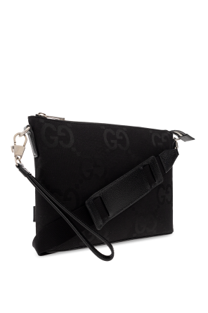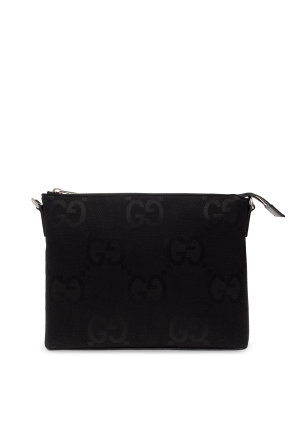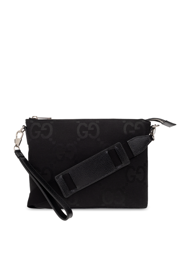 Black shoulder bag from Gucci. Crafted from monogrammed fabric, this design fastens with a zip and features a detachable shoulder strap, silver-tone metal hardware and one internal compartment with a zip pocket.