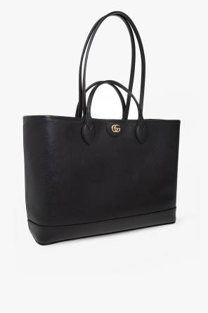 Black ‘Ophidia Medium’ shopper bag from Gucci. Crafted from calf leather, this design showcases a metal ‘Double G’ plaque on the front, four half-round handles, gold-tone metal hardware and one internal compartment.