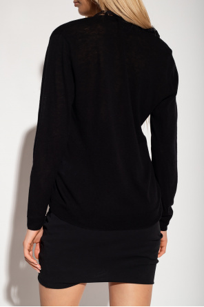 Iro的黑色Haby毛衣,采用羊绒和真丝混纺面料制成,V 领设计,蕾丝饰边,下摆和袖口饰有罗纹饰边。