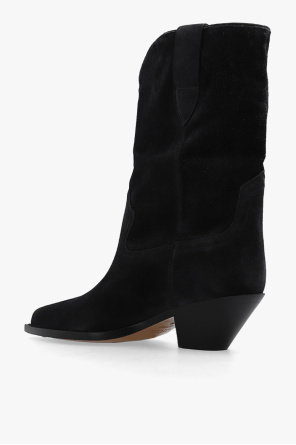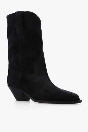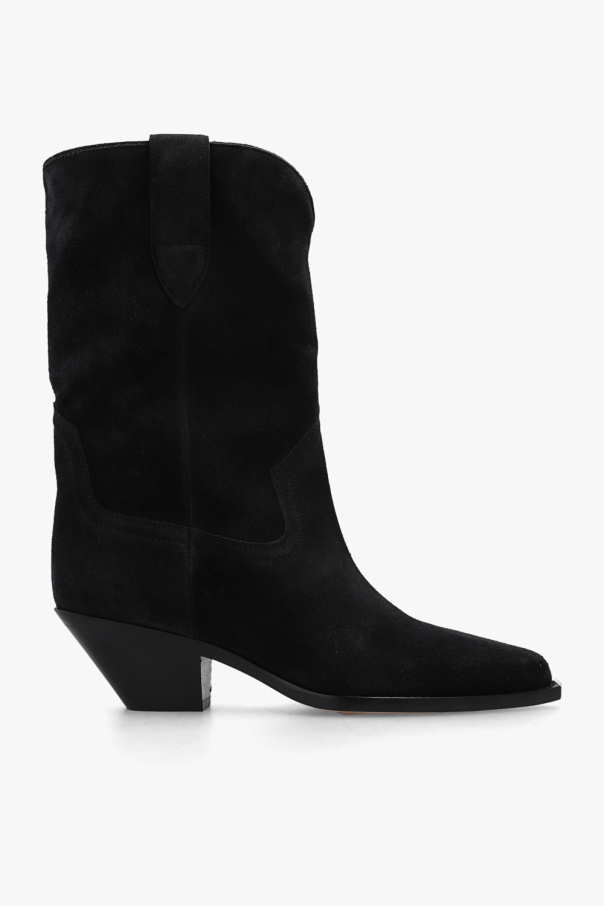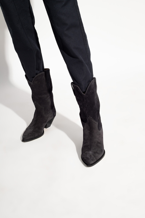 Black ‘Dahope’ cowboy boots from Isabel Marant. Made of suede, this pair features a pointed toe and brown leather sole.