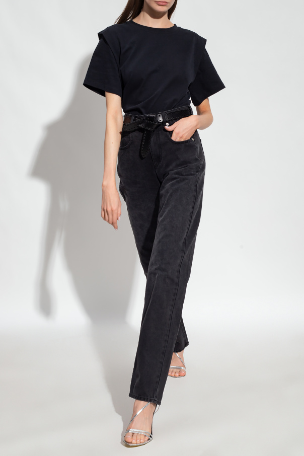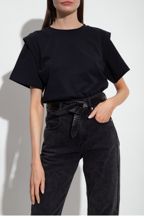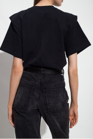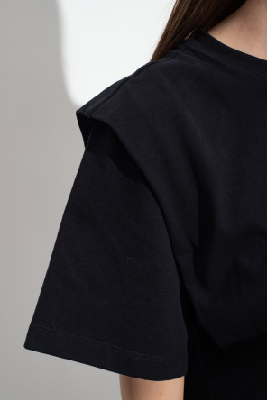 Isabel Marant 黑色'Zelitos'T恤,采用棉质面料制成,肩部、短袖上有褶皱细节,衣领上有罗纹。