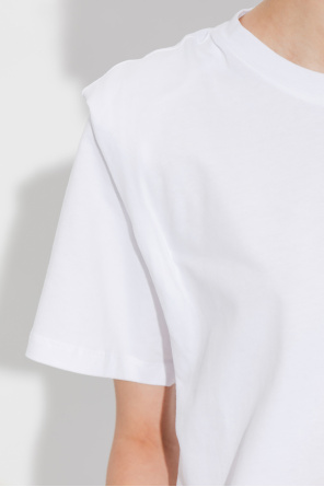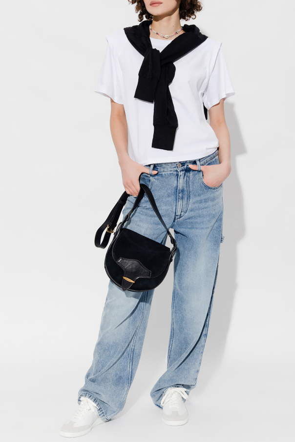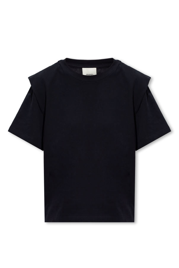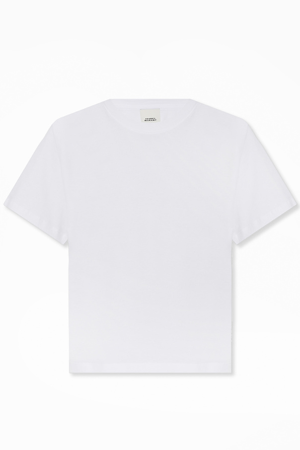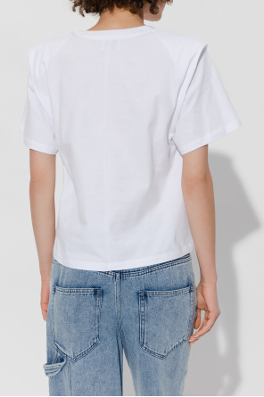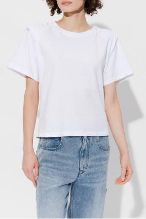 White ‘Zelitos’ top from Isabel Marant. Made of cotton, this short sleeve design features decorative pleats on the shoulders and ribbed crew neck.